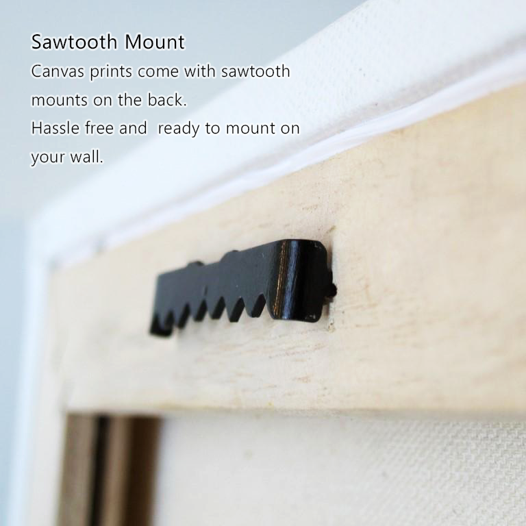 Canvas prints come with sawtooth mounts on the back. Hassle free and ready to mount on your wall.